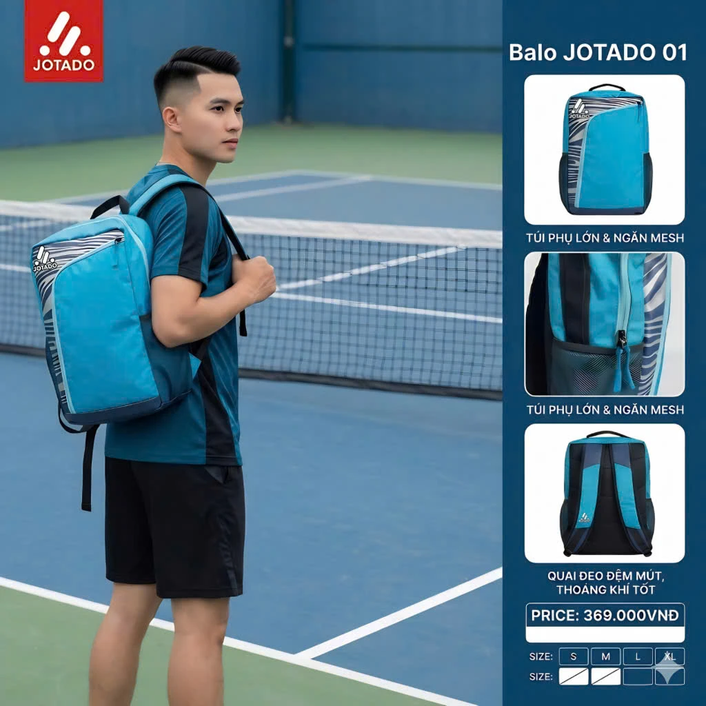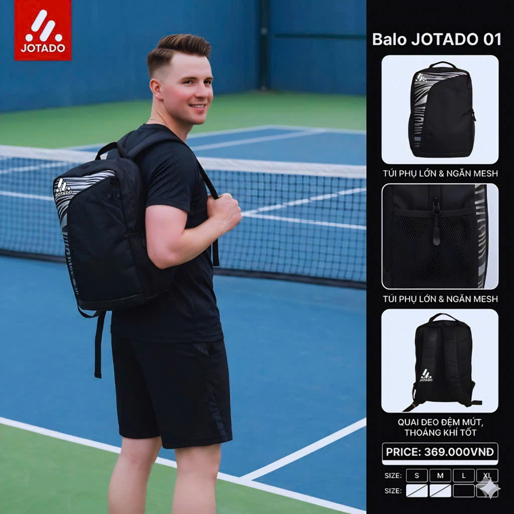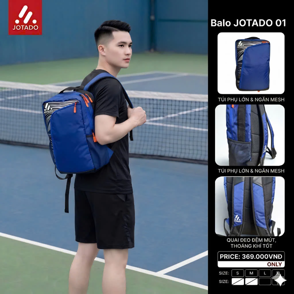 Dù là đi tập bóng, đi gym hay những chuyến du lịch ngắn ngày, Balo Jotado 01 luôn đáp ứng hoàn hảo nhu cầu của bạn. Với thiết kế thông minh tập trung vào công năng sử dụng, chiếc balo này giúp bạn sắp xếp đồ dùng khoa học, gọn gàng và luôn sẵn sàng cho mọi hành trình bứt phá.