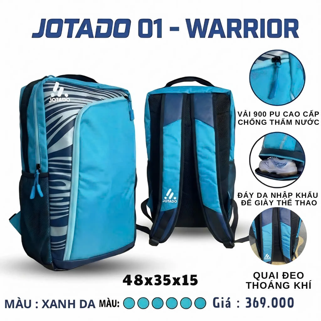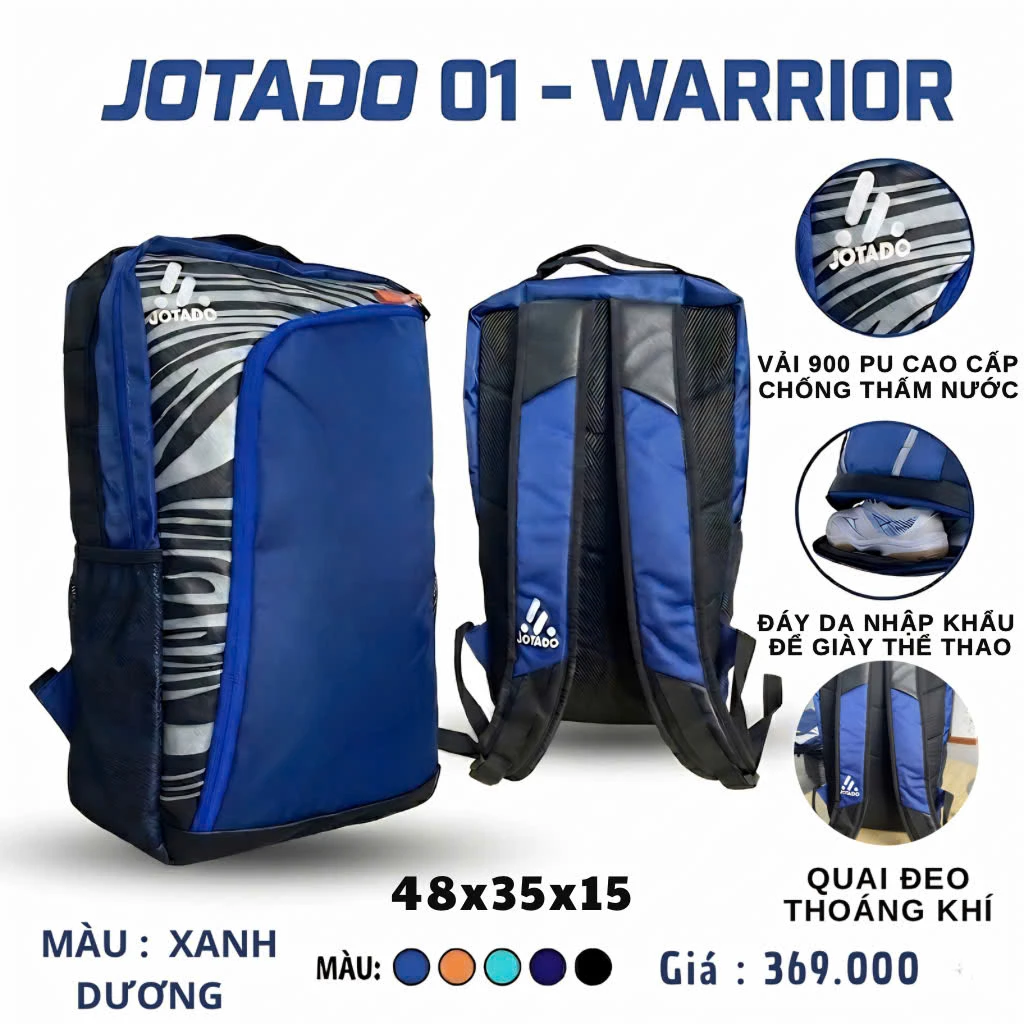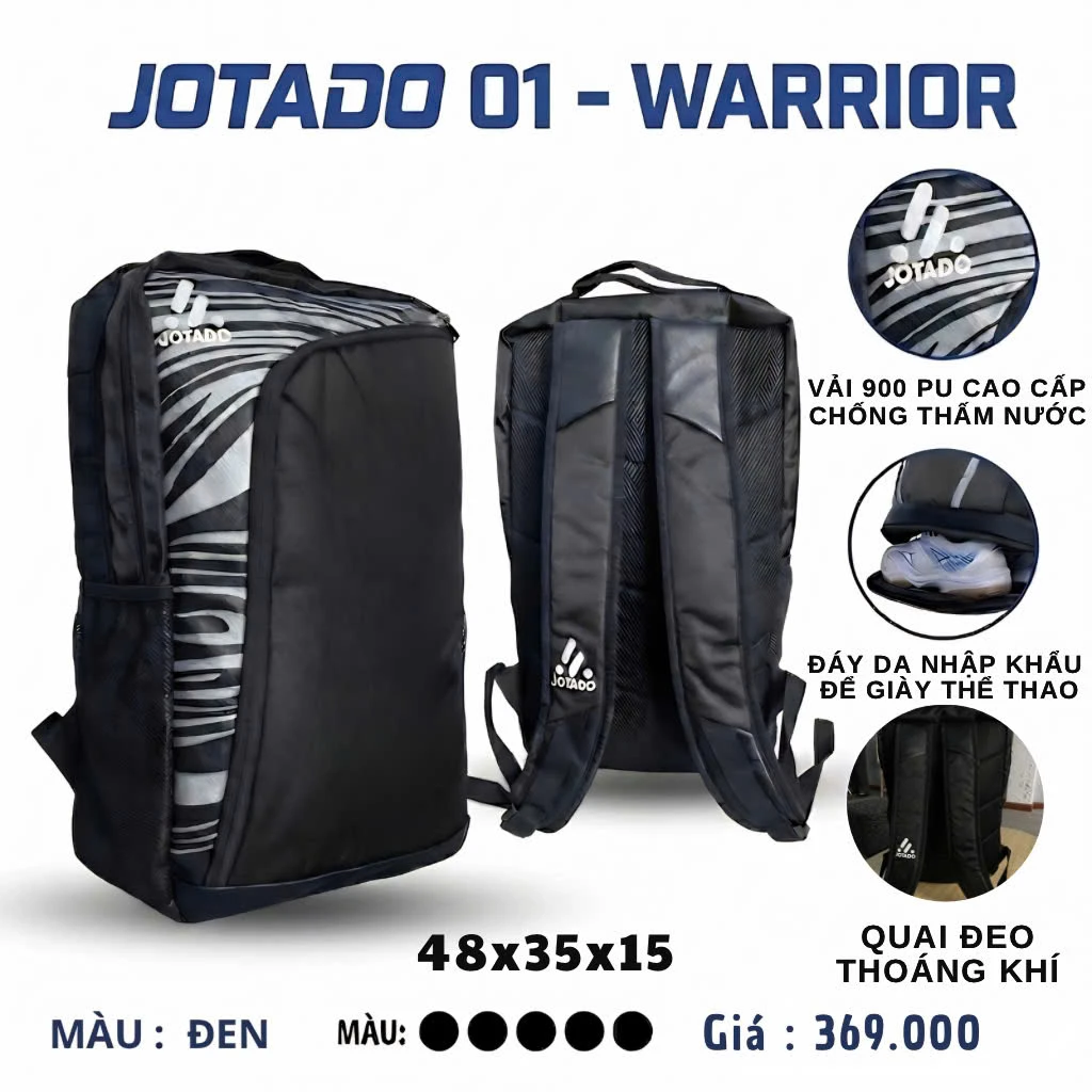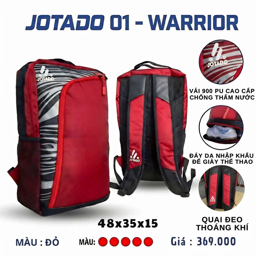 Dù là đi tập bóng, đi gym hay những chuyến du lịch ngắn ngày, Balo Jotado 01 luôn đáp ứng hoàn hảo nhu cầu của bạn. Với thiết kế thông minh tập trung vào công năng sử dụng, chiếc balo này giúp bạn sắp xếp đồ dùng khoa học, gọn gàng và luôn sẵn sàng cho mọi hành trình bứt phá.